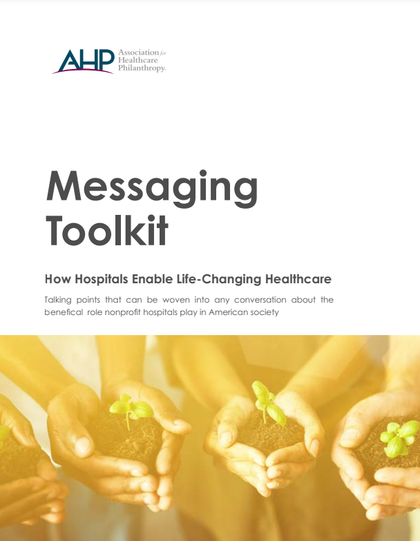 woven into any conversation about the role nonprofit hospitals and health systems play in enabling life-changing healthcare. By showcasing the countless benefits our organizations are providing to donors and the community, we can mitigate the damage of negative press.